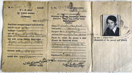 1973, Trekking Permit - offizielle Erlaubnis abgelegene Gebiete im Himalaya zu besuchen